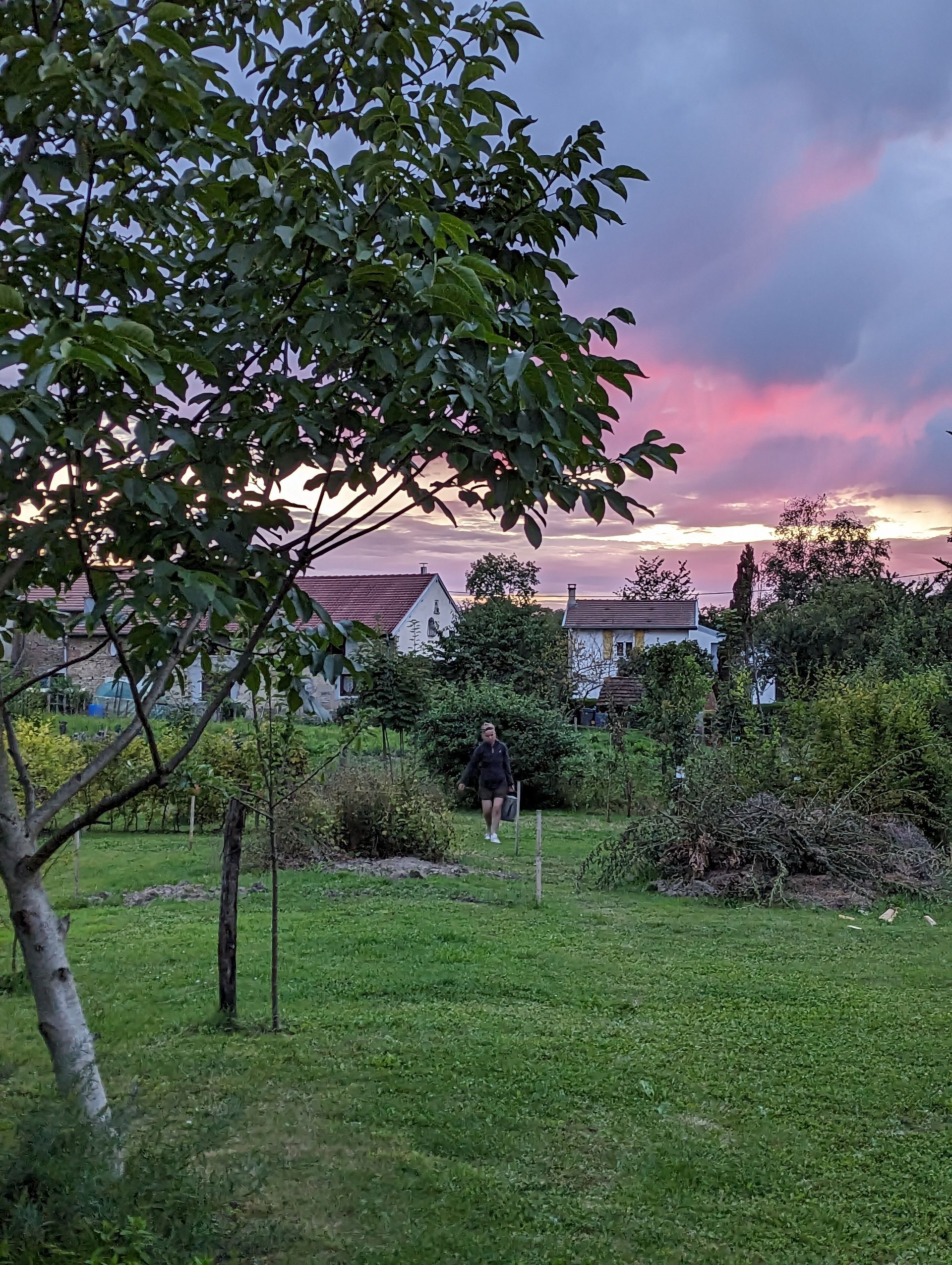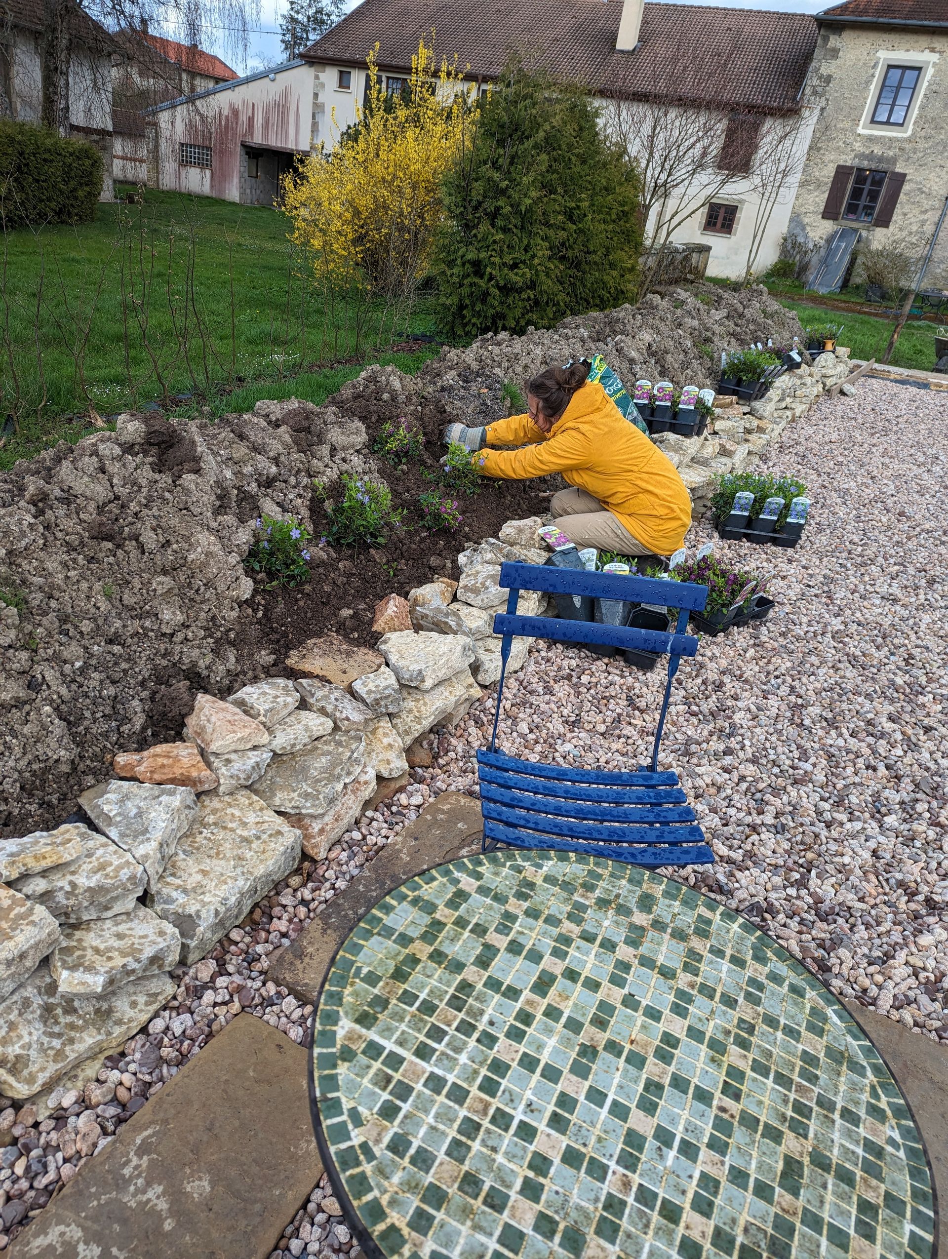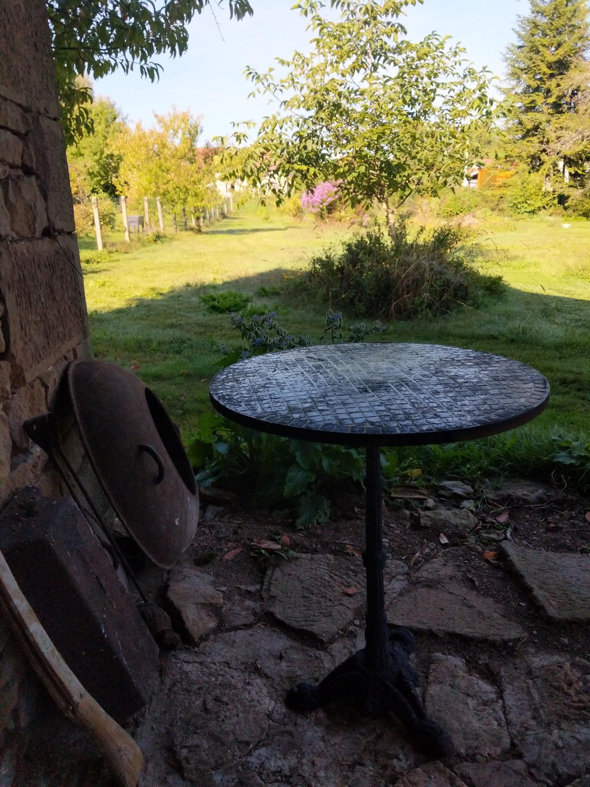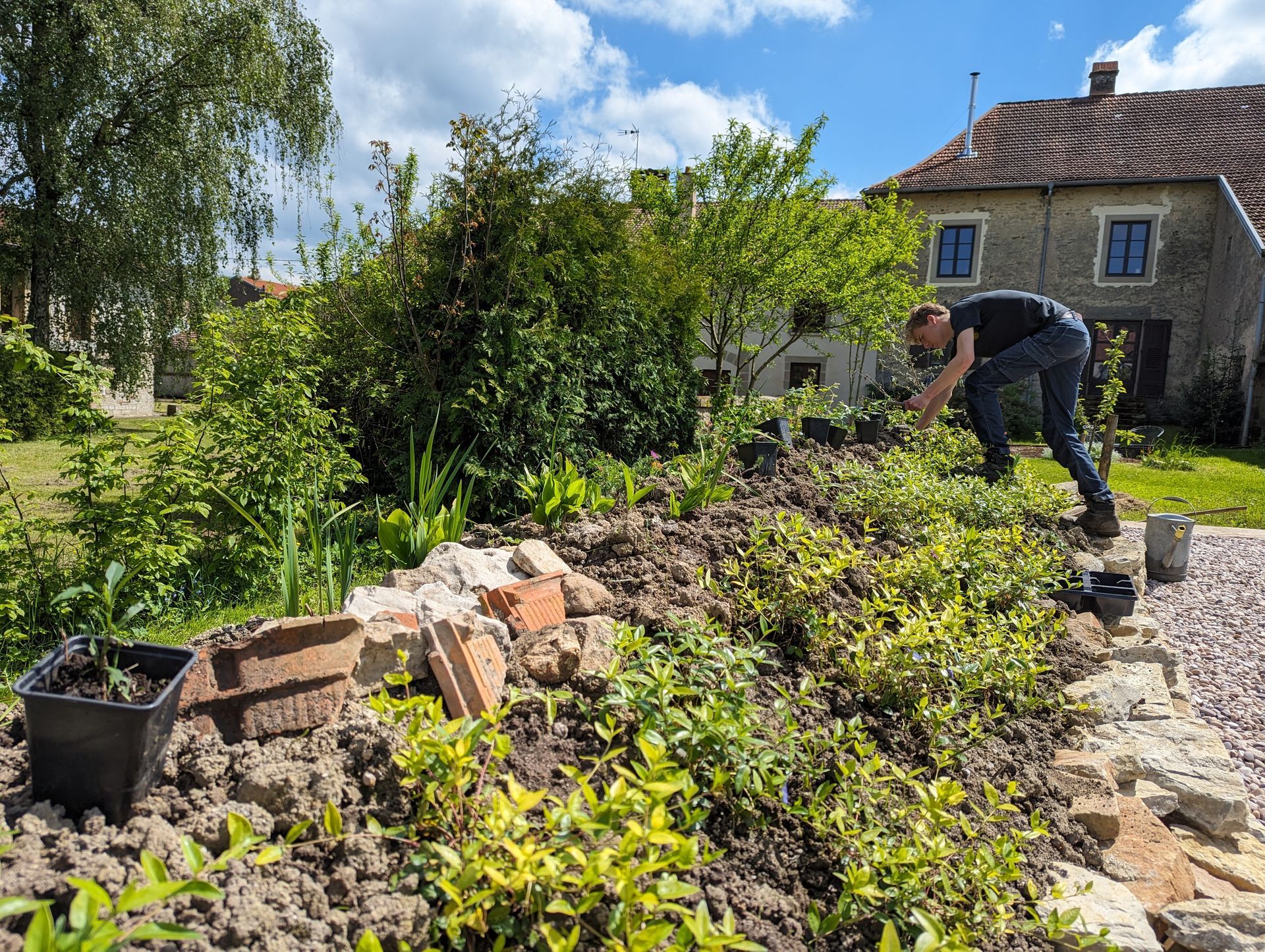 We leren de tuin nu langzaam een beetje kennen en die verrast ons al per seizoen. Die dorre struik blijkt in de zomer vol in bloei te staan met de mooiste paarse bloemen. We hebben een notenboom, even verderop een frambozenstruik en dat daar is een perzikboom ... Het oude bakhuisje met afdak wordt vast de uitvalsbasis voor een buitenkeuken. De tuin biedt genoeg ingredienten voor een heerlijk verblijf. Met een boek in de schaduw of met zijn allen eten in de avondzon.