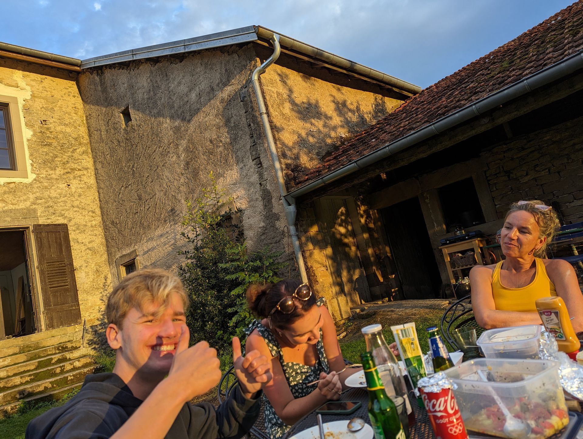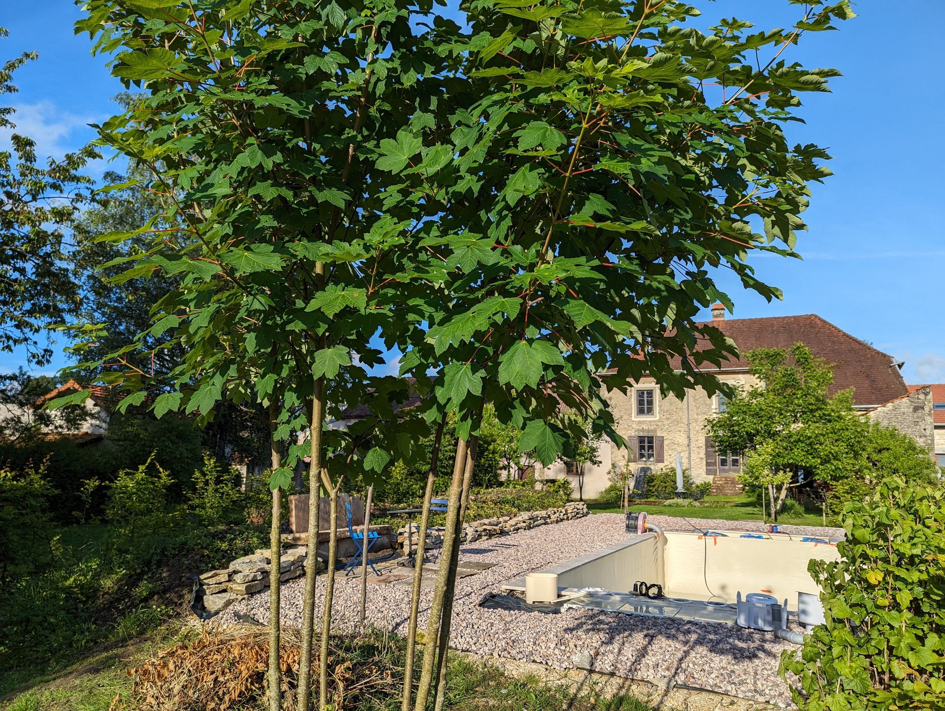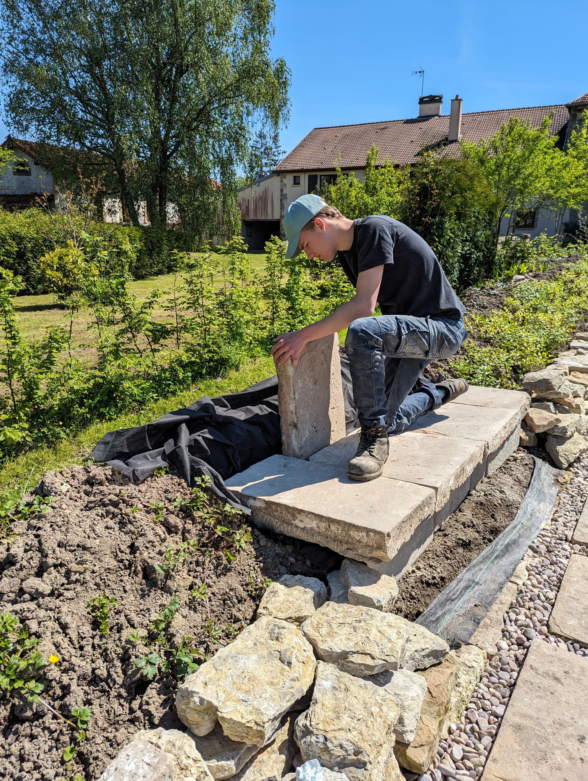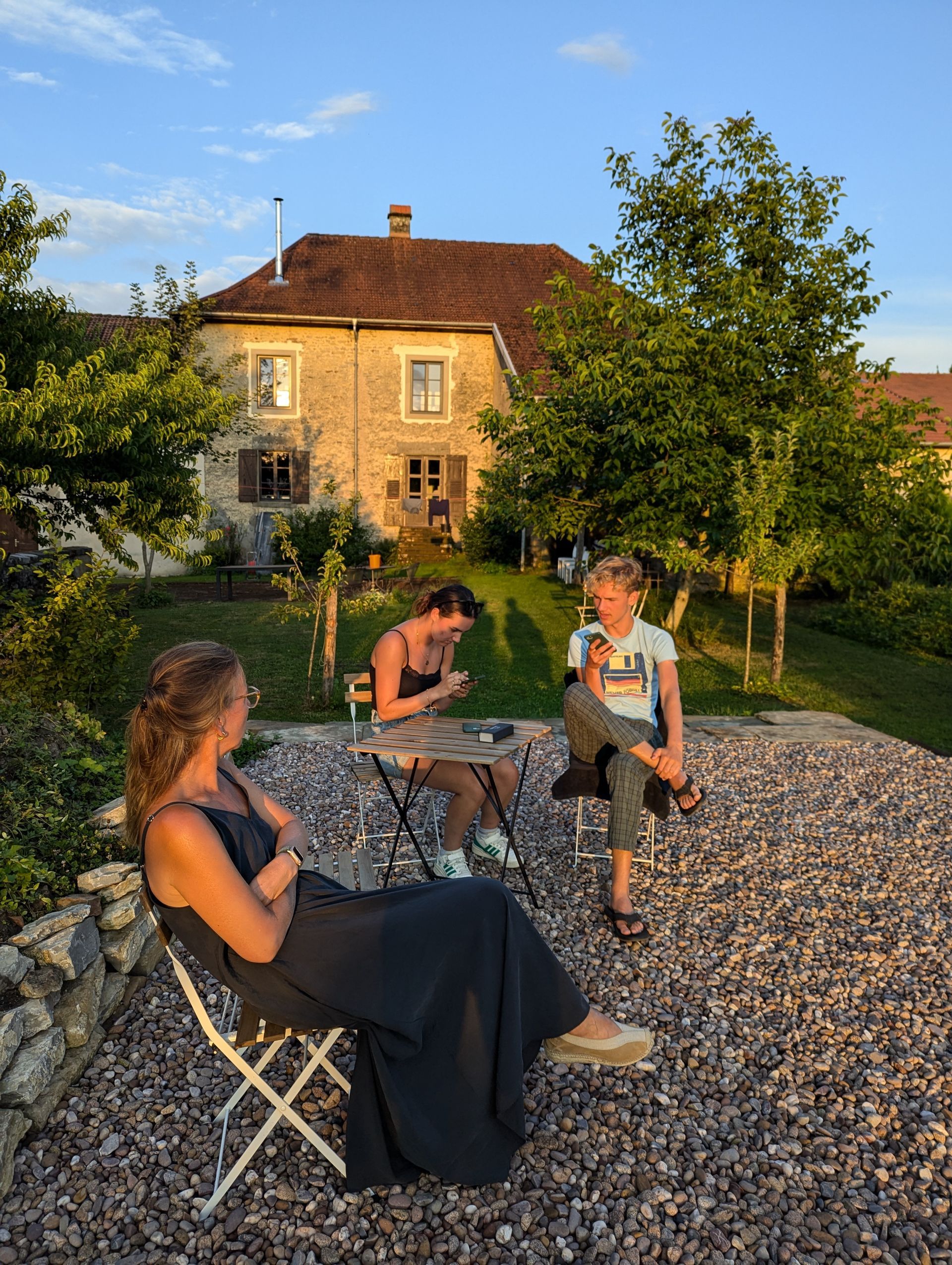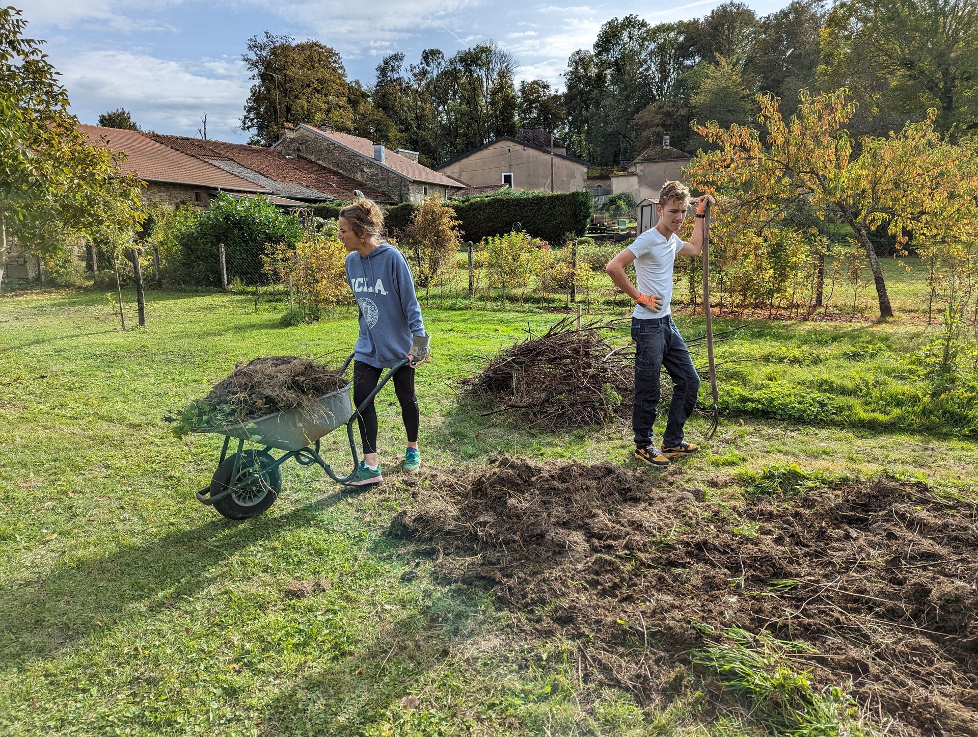 We leren de tuin nu langzaam een beetje kennen en die verrast ons al per seizoen. Die dorre struik blijkt in de zomer vol in bloei te staan met de mooiste paarse bloemen. We hebben een notenboom, even verderop een frambozenstruik en dat daar is een perzikboom ... Het oude bakhuisje met afdak wordt vast de uitvalsbasis voor een buitenkeuken. De tuin biedt genoeg ingredienten voor een heerlijk verblijf. Met een boek in de schaduw of met zijn allen eten in de avondzon.